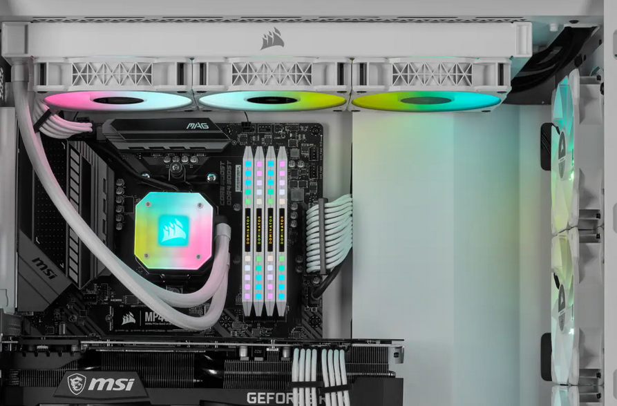 Los ventiladores PWM de CORSAIR ML RGB Series ofrecen un potente flujo de aire para conseguir un rendimiento extremo al enfriar la CPU, con ocho LED RGB por ventilador.