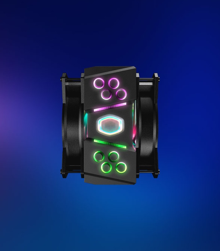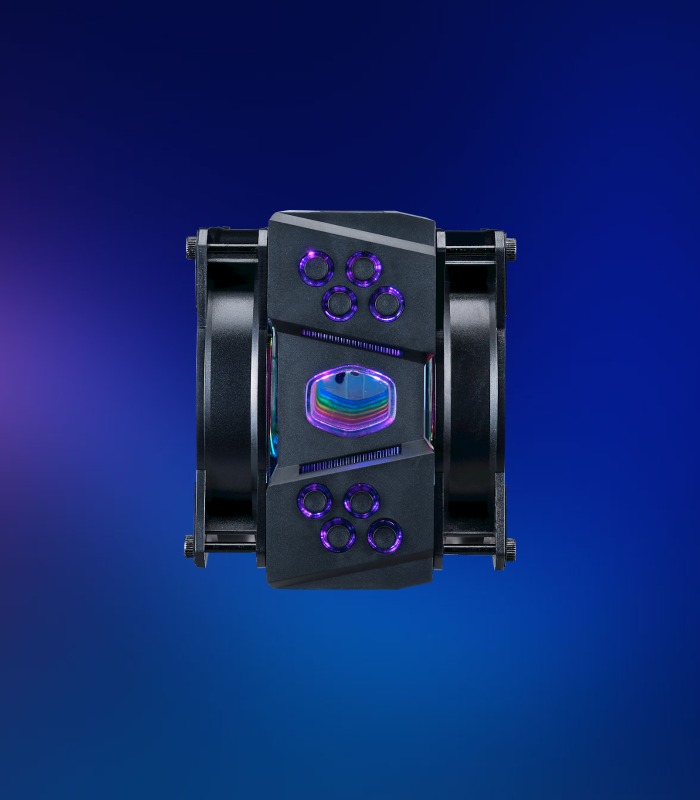Armadura especializada diseñada para guiar el flujo de aire para un rendimiento máximo de enfriamiento y reducir los puntos de calor muerto en el enfriador. La armadura también está iluminada por 28 LED rgb direccionables para una personalización a todo color.