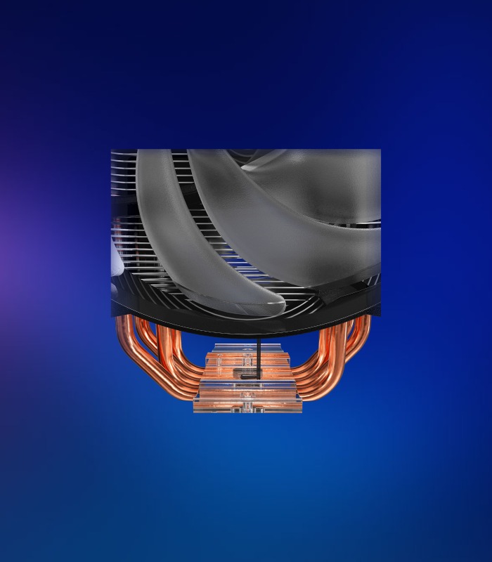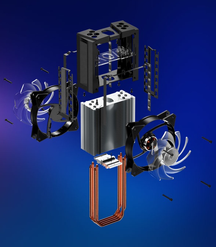 Para evitar pérdidas dinámicas y ayudar a acelerar el escape de calor, el MasterFan push-pull ayuda a alejar el calor más rápido del disipador térmico.