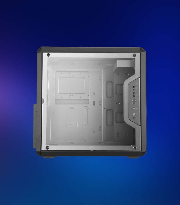 El MasterBox Q500L modular puede orientarse vertical y horizontalmente con tornillos de mariposa recubiertos de goma que también actúan como pies. Según la configuración del hardware, el panel de E/S móvil se puede reubicar en varias posiciones para mantener su accesibilidad.