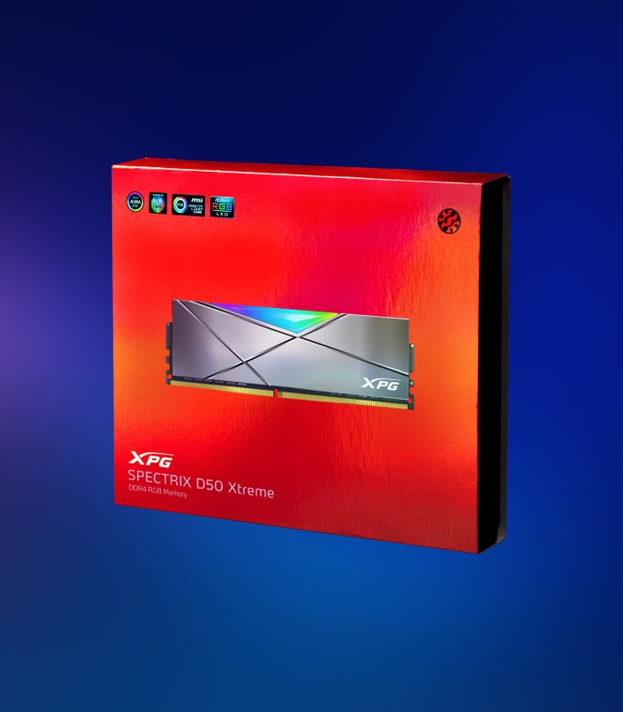 Con velocidades de hasta 5000 Hz, el módulo de memoria XPG SPECTRIX D50 Xtreme DDR4 RGB no solo tiene un excelente rendimiento, sino que también tiene una bonita forma con su disipador de calor sólidamente construido con hermosas líneas geométricas y RGB deslumbrante.