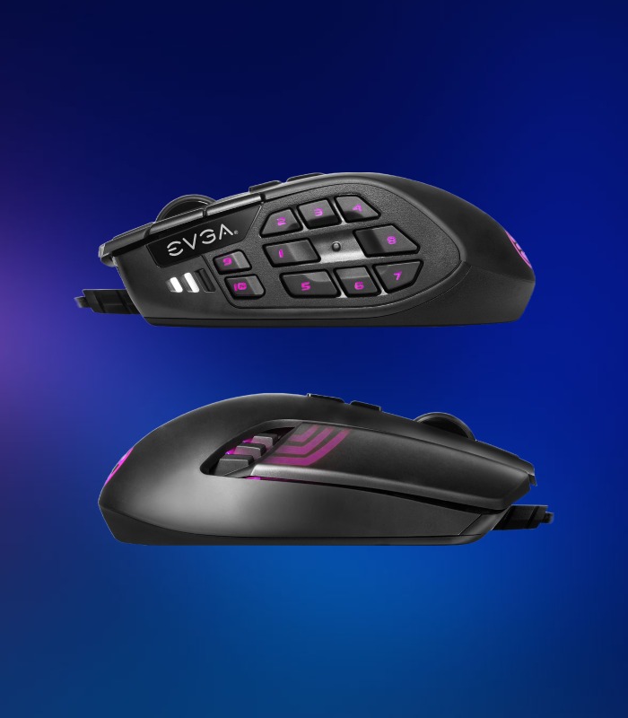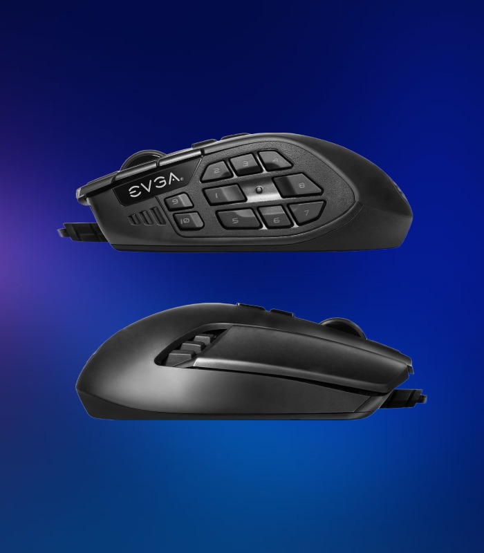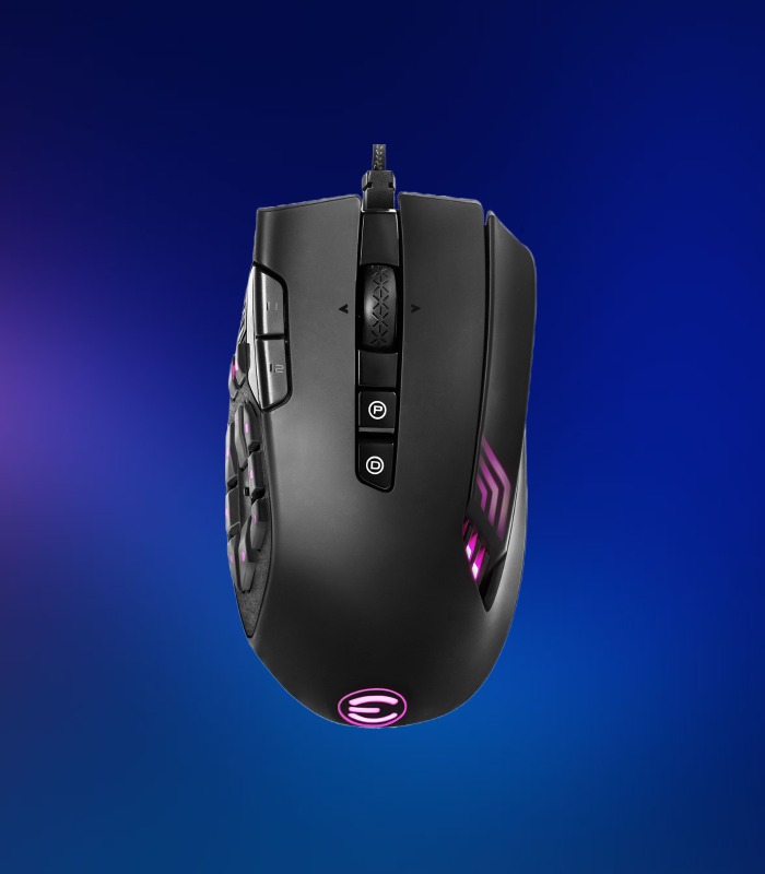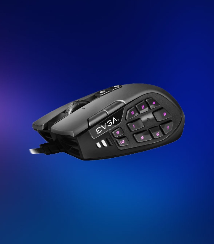 El mouse para juegos MMO de EVGA ofrece un panel MMO multipropósito, equipado con 10 botones mecánicos y una ergonomía diseñada para agarres de palma, logrando un excelente click y comodidad. Puedes acceder a controles multi-capa y más botones que se ajusten a tus necesidades con el botón físico E-Shift. Alimentado por el software EVGA Unleash RGB, el control y la personalización completa están al alcance de tus manos.