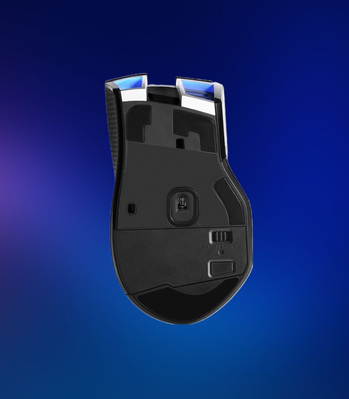 El mouse para gaming X20 tiene 3 modos de conexión: Una conexión inalámbrica de 2.4GHz con velocidad ultra rápida de 1ms, una conexión Bluetooth multipropósito, y una conexión USB para utilizarlo durante su carga.