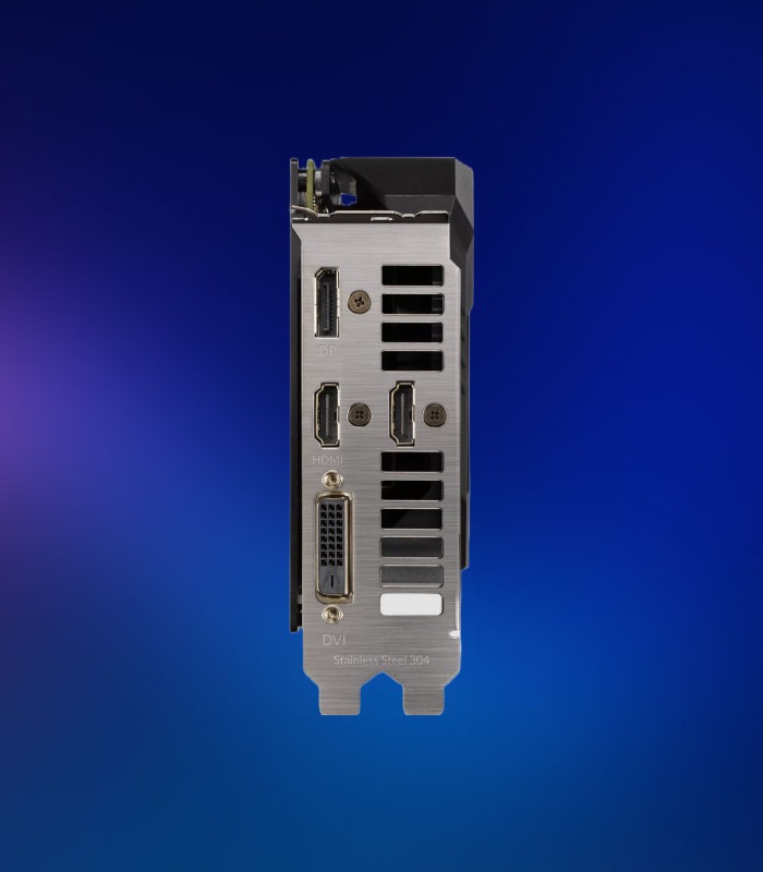 El soporte de montaje de la TUF Gaming GeForce GTX 1660 Ti EVO se ha reforzado con acero inoxidable 304 que es más duro y resistente a la corrosión.