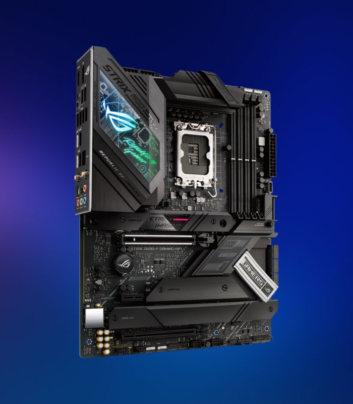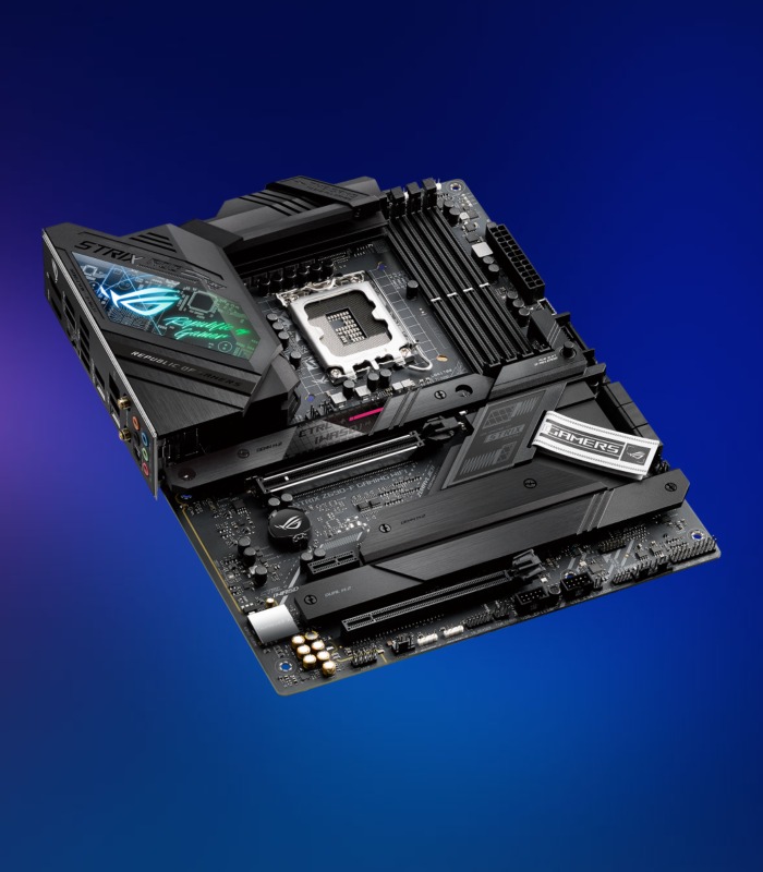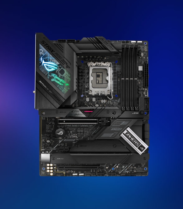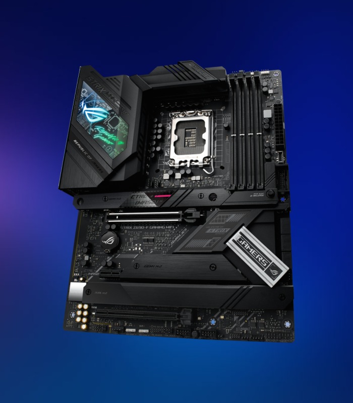 Con cuatro ranuras M.2 estratégicamente ubicadas, ROG Strix Z690-F Gaming WiFi aprovecha el potente ancho de banda de la CPU y el chipset para ofrecer transferencias de datos PCIe 4.0 ultrarrápidas, Intel NVM Express® RAID y opciones de unidades de alta capacidad que superan a las tradicionales SATA- SSD