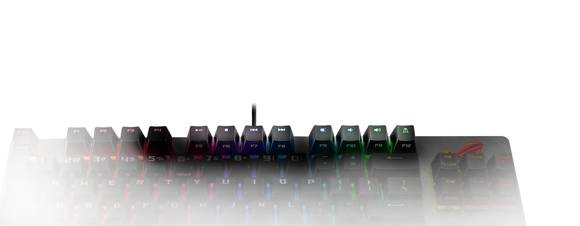 El interruptor de cambio rápido prepara el ROG Strix Scope NX TKL para jugar o para la rutina diaria, alternando la fila superior entre la entrada de medios o la tecla de función (Fn), por lo que es fácil cambiar de modo para trabajar o jugar.