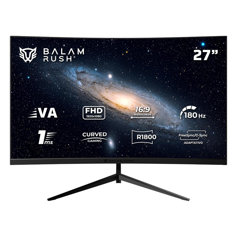 Balam Rush Andromeda Monitor Gamer Curvo MAG27Y, 27 Pulgadas, FHD, 180Hz, 1ms, VA, Pantalla Curva R1800, F-Sync, G-Sync, Flicker-Free, HDMI 2.1, DisplayPort 1.4 (Negro)