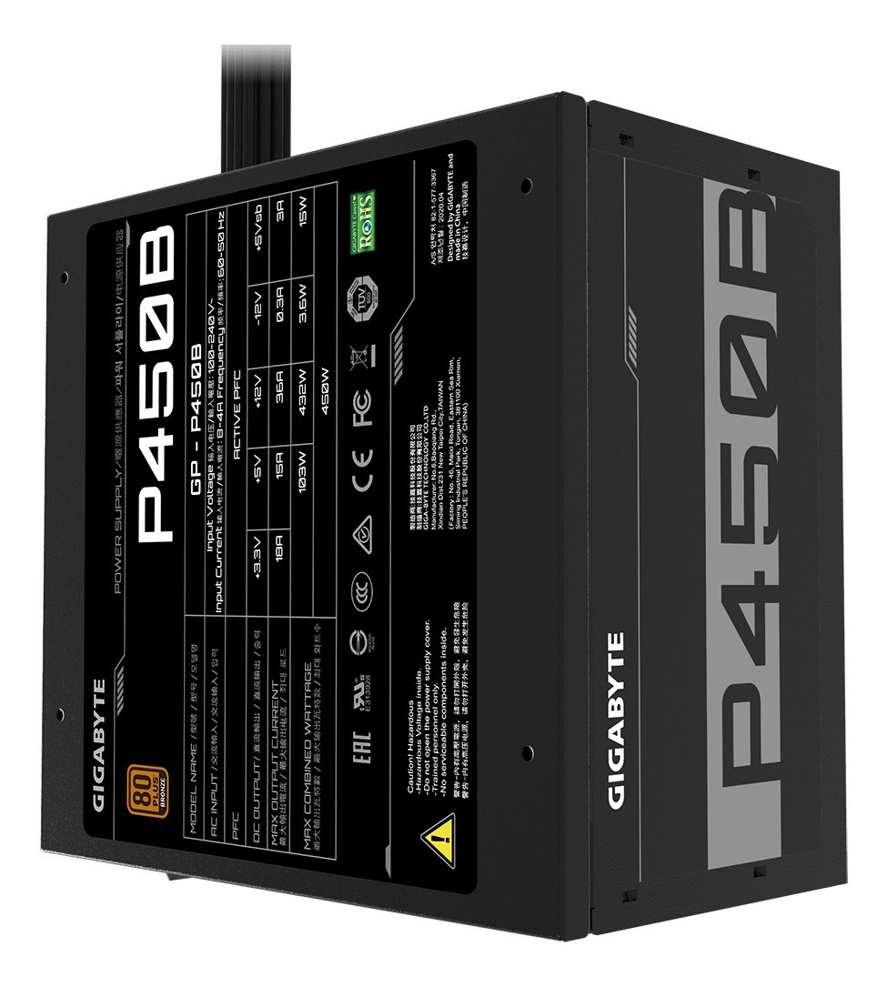 Fuente De Poder Gigabyte P450b, 80 Plus Bronce, 450w, 120mm