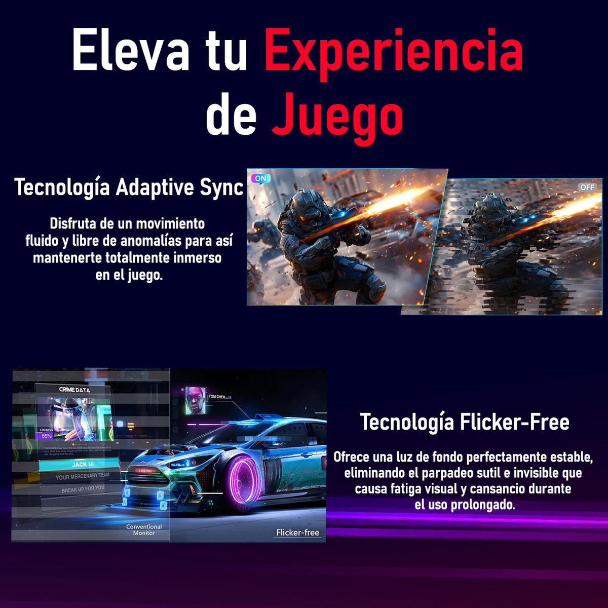 El RIFT R27Q8 cuenta con un tiempo de respuesta ultra-rápido de 1ms (MPRT) y una tasa de actualización de 180Hz que asegura un movimiento ultra-fluido, además de contar con una resolución QHD (2560×1440). Esta combinación de velocidad y fidelidad de alta resolución maximiza tanto el rendimiento como la inmersión visual. Disfruta de un movimiento consistentemente fluido y libre de anomalías gracias a la tecnología Adaptive Sync.