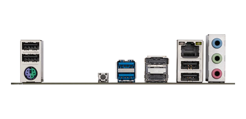 El panel trasero de la B650M H ofrece múltiples opciones de conectividad, incluyendo un puerto RJ-45 y dos puertos USB 3.0 Gen 1, facilitando la conexión de dispositivos periféricos. Además, cuenta con tres conectores de audio jack, lo que permite una experiencia de sonido envolvente y de alta calidad.